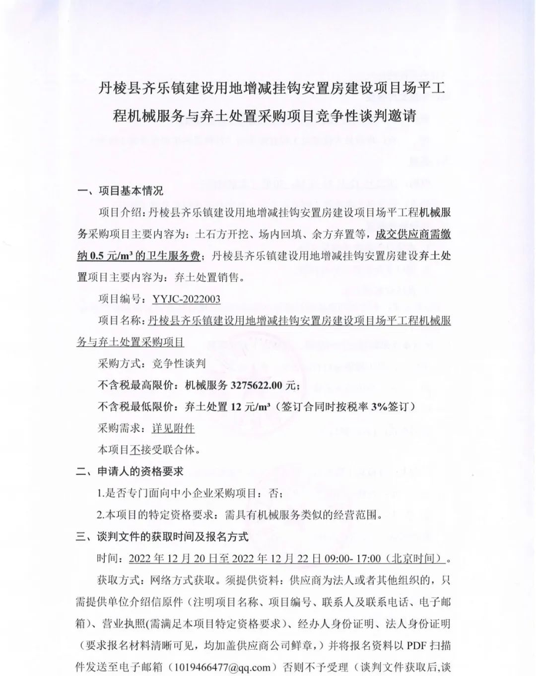 丹棱縣齊樂(lè)鎮(zhèn)建設(shè)用地增減掛鉤安置房建設(shè)項(xiàng)目場(chǎng)平工程機(jī)械服務(wù)與棄土處置采購(gòu)項(xiàng)目競(jìng)爭(zhēng)性談判邀請(qǐng)