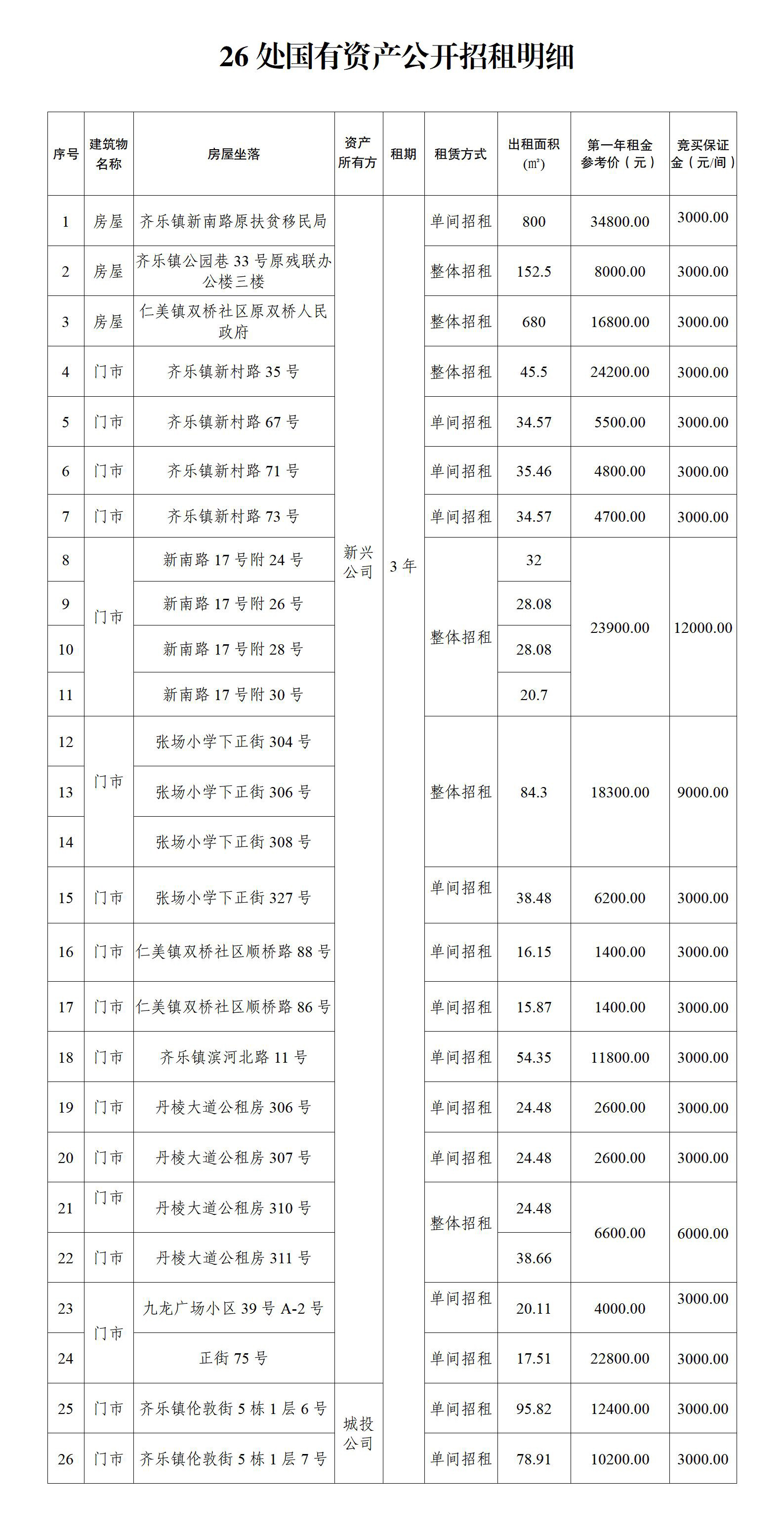 丹棱縣26處國有資產(chǎn)3年租賃權(quán)