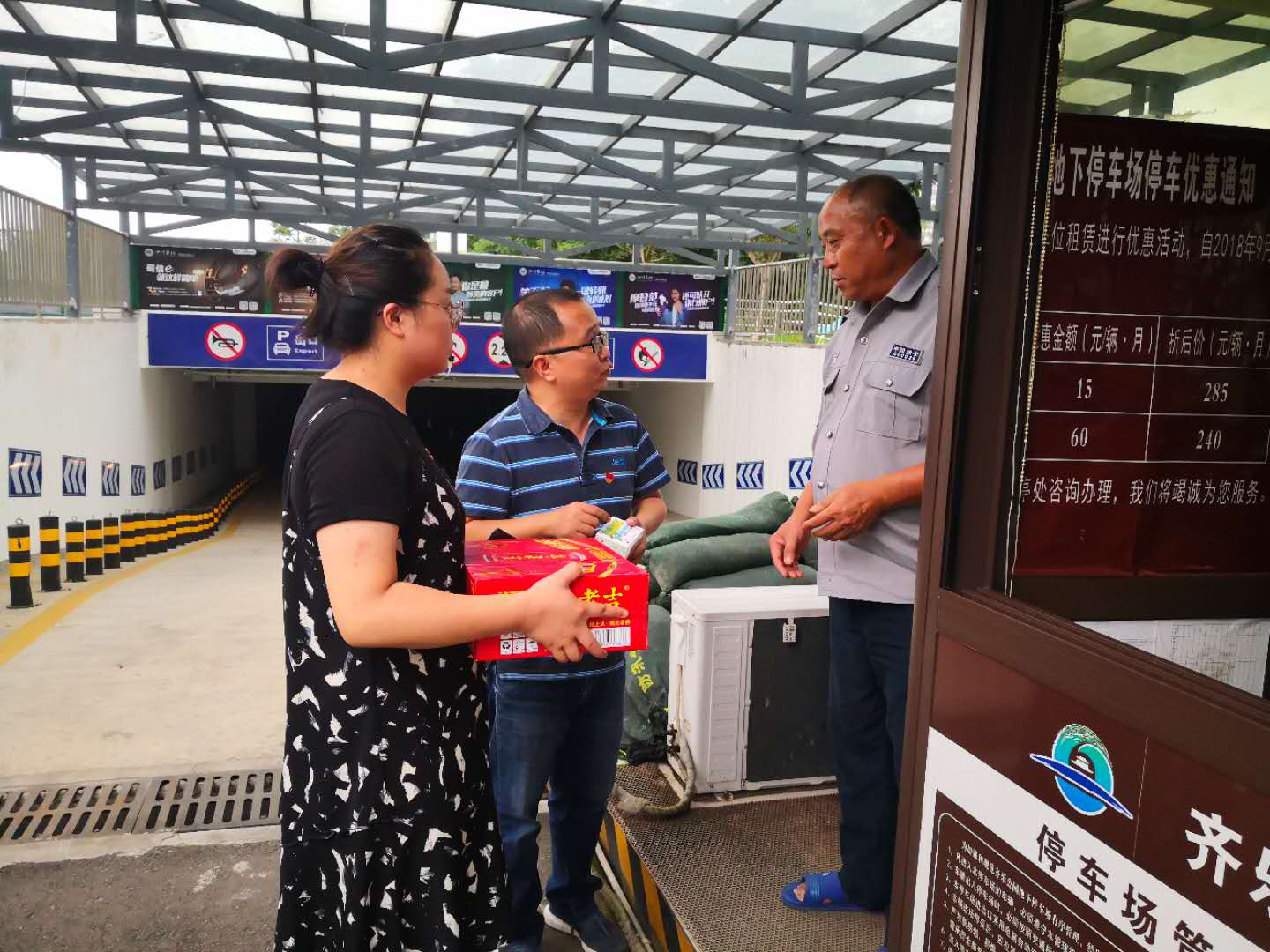 慰問活動由公司副總經(jīng)理熊鷹睿同志帶隊,活動中,丹發(fā)展工會為齊樂公園地下停車場、三余橋生活市場地下停車場全體一線職工發(fā)放清涼飲料,真誠感謝一線職工不畏酷暑、堅守崗位,叮囑他們要合理安排作息時間,注意勞逸結合,落實好各項防暑降溫措施,確保安全工作。